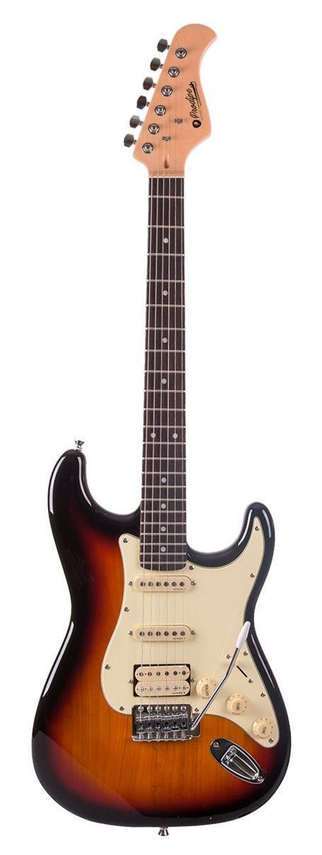 HSS Strat from Prodipe/France - unbeatably good in its class! Rosewood fingerboard, AlNiCo V pickups, good vintage tremolo! Also available in Black, Vintage White, Candy Apple Red