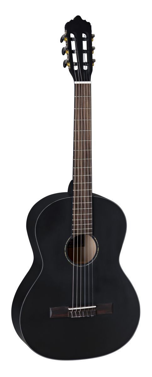 NEU: Attraktive matt schwarze 7/8 Konzertgitarre von La Mancha mit massiver Fichtendecke und Mahagonikorpus, Mahagonihals mit 63cm Mensur und 47mm Sattel aus NuBone von GraphTech.
