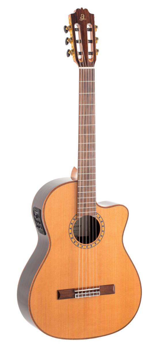 Made in Spain: professionelles Bühneninstrument mit erstklassiger Admira-Verarbeitung, ausgestattet mit massiver Zederdecke, Cutaway, Fishman PreSys Blend (Pickup & Mikrofon), Knochensteg und 48mm Sattel. Sehr gut!