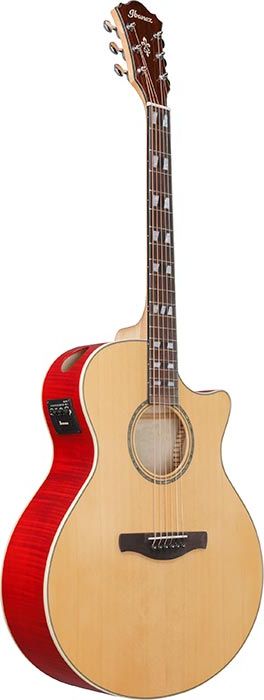 Elegante Gitarre mit flachem AE-Korpus aus geflammtem Ahorn (mit AIR Port!) und einer thermo-aged massiven Sitka Fichtendecke, Ahornhals und dem hochwertigen AEQ-TP2 Preamp
